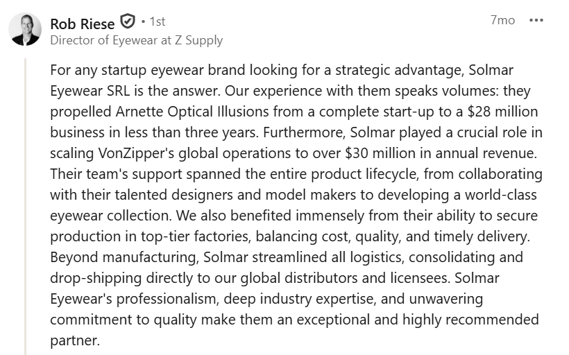 Jeremy reshaped SOLMAR into a flexible, multi-factory partner, selecting the right manufacturing base for each individual collection rather than relying on a single source.
